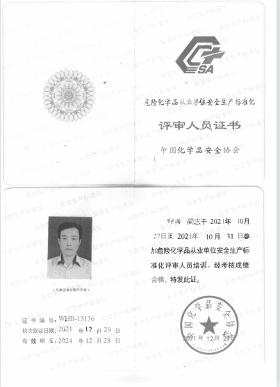 4.2022年3月被聘为中国化学品安全协会专家库专家。
