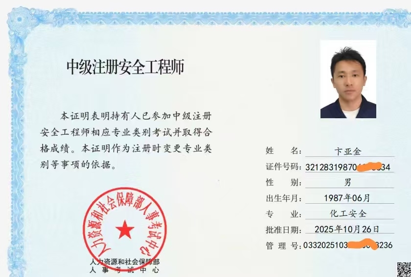 自2022年起专注安全生产管理工作,持有注册安全工程师(化工安全、其他安全)双专业证书、消防相关证书,专业资质完备。工作核心聚焦现场安全巡查与隐患整改闭环,牵头组织安全培训及应急演练,主导事故调查分析与复盘改进,同时负责职业卫生管理、安全操作规程等核心文件的编制与优化,筑牢生产安全防线。